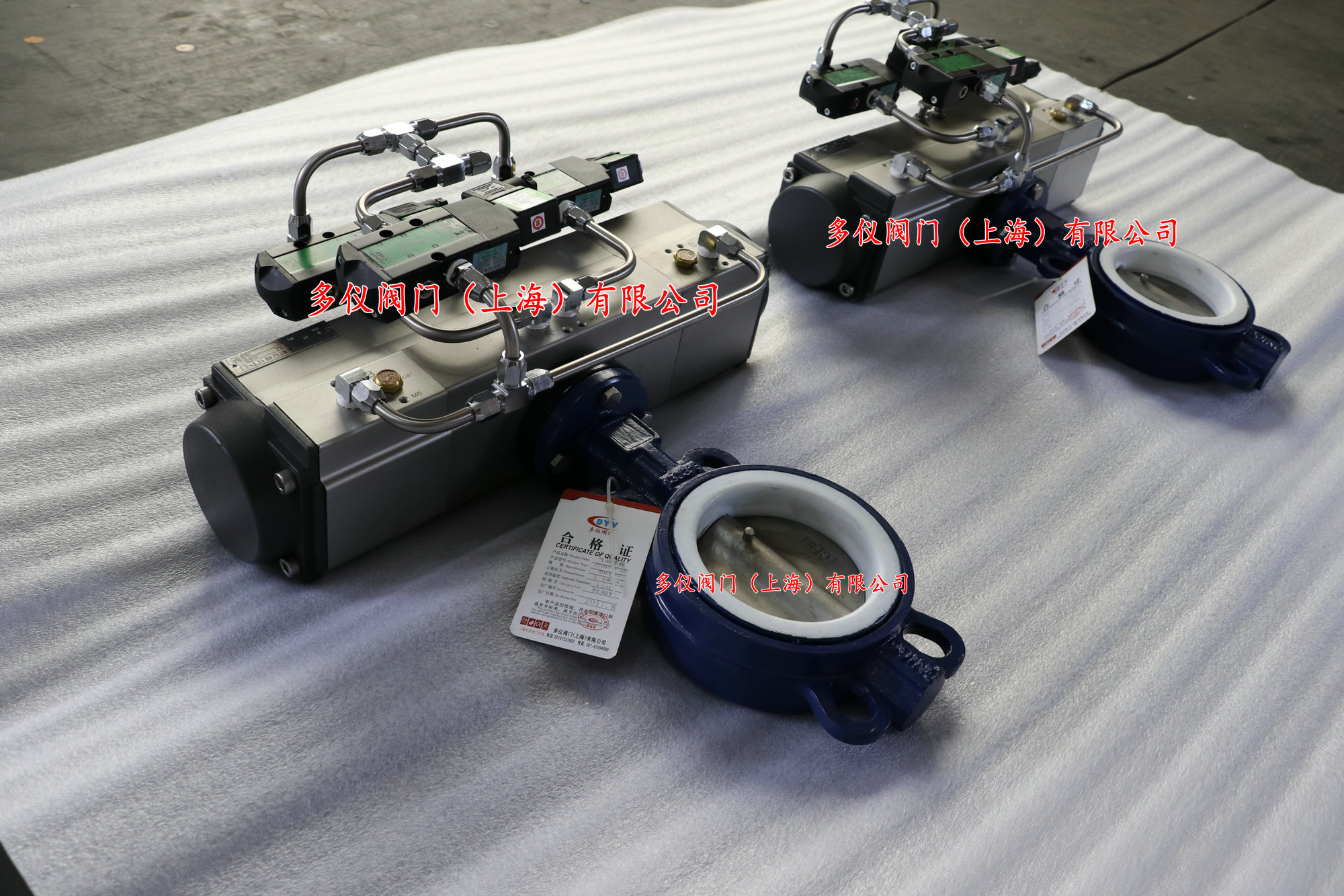 氣動分段式蝶閥通過一套電磁閥來控制回路,實現對蝶閥的位置可控性,一般有0° -45°-90°或者0° -90°-180°的操作方式,也可根據用戶需要定制中間值,如30°、50°、60°等中間位置,也可在現場設定0-60°之間進行設定以滿足現場對不同流量的控制。